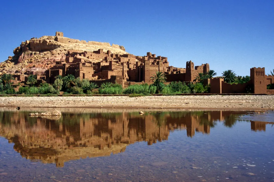 This tour begins with a scenic drive through the High Atlas Mountains and Berber villages. You'll cross the Tizi n'Tichka, the highest road in Morocco (2260m), and the only direct pass that leads you to Ouarzazate and the Southeast region. Your first stop will be at the Kasbah of Ait Benhaddou, located on the heights of the Ounila Valley, which offers spectacular views of ochre villages, abandoned kasbahs, orchards, and Ksours. Lunch will be at the Kasbah before continuing on to Ouarzazate, the gateway to the desert and the city of cinema, where you'll visit the museum and cinema studio. From there, you'll head to Dades Gorge through the rose city of Kelaat-Megouna and the Valley of Roses, where you'll spend the night.