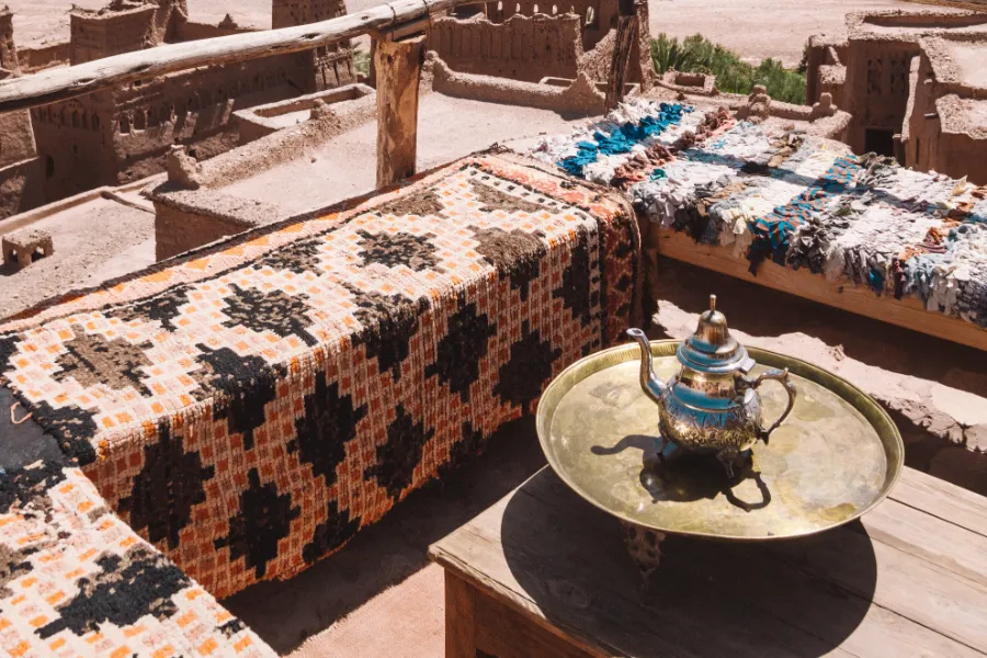 Traverse the majestic High Atlas Mountains, passing through the Tizi n'Tichka pass at 2260m altitude, and witness the stunning landscapes of the Ounila Valley, where ochre villages, abandoned kasbahs, and Ksours dot the horizon. Visit the UNESCO World Heritage Site of Kasbah Ait Ben Haddou, and explore the fascinating museum and cinema studio in Ouarzazate.